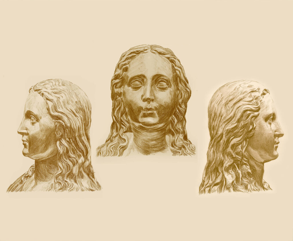 The process began with a small clay maquette — the essential gesture of the sculpture. In the maquette, I established the upward motion of the cloak, the protective stance of the body, and the flow of the garment, which needed to feel like real fabric animated by spiritual presence. Without high-resolution references or direct access to the original statue, I relied on a sculptor’s instincts — the way weight travels through the feet, the mechanics of the shoulders beneath heavy drapery, and the subtle arc of the neck that conveys serenity.
