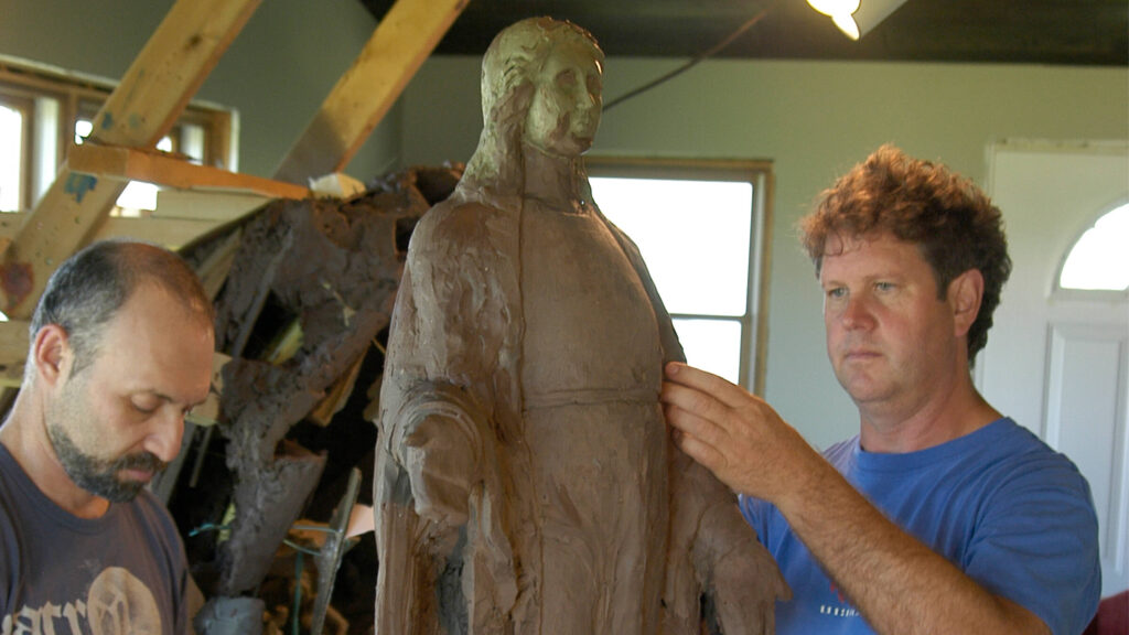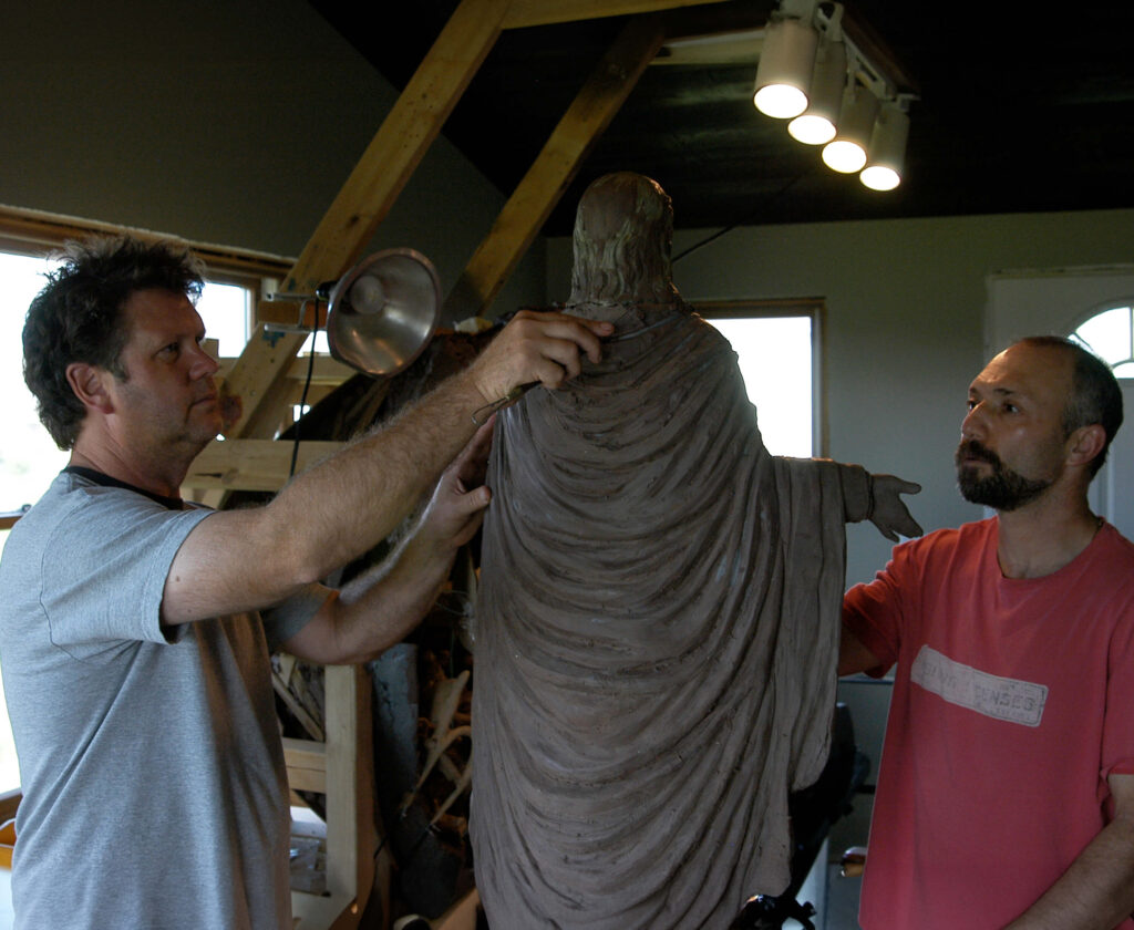 Sculpting Our Lady required the same faith-driven intuition that shaped the original: Back then, drones were not readily available, no crane access was available, there was little eye-level photography, there were only sketches and long-shot photos, there was archival study, and there was the artist’s ability to translate reverence into form. What began as a small clay maquette evolved into a monumental bronze, shaped through traditional craft and the belief that sculpture is a devotional act.