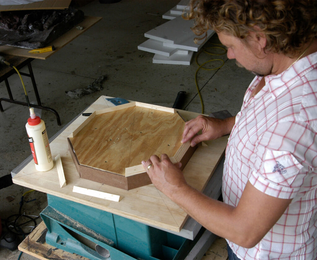The commission required accurate proportions at 42 inches, so Kamish relied on archival photographs and scaled drawings to interpret details not visible from the ground. The sculpture followed a full bronze workflow: clay enlargement, molding, lost-wax casting, metal finishing, and final gilding in 23.75kt gold leaf.